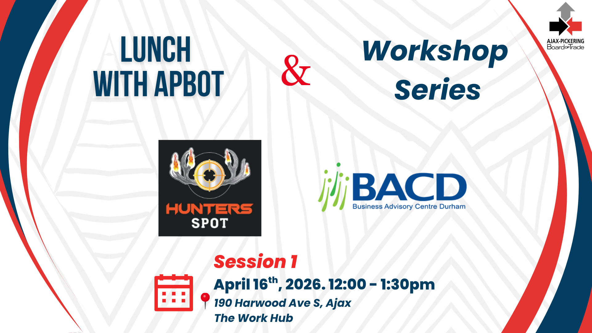 DESCRIPTION:Join us for a special edition of Lunch with APBOT - With a Twist!This time\, we're doing things a little differently.Our upcoming lunch will take place at The Work Hub   Ajax on April 16th from 12:00 PM   1:30 PM\, but this won't be your typical networking lunch. For this one event\, we're adding a valuable learning component to the experience.Introducing Sell Smarter. Market Better\, a practical workshop series presented in partnership with the Business Advisory Centre Durham (BACD). This special edition of Lunch with APBOT will feature the first session in the series\, combining meaningful networking with hands-on business insights.Workshop 1: Sales That Convert\nBuild confidence\, structure your sales conversations\, and close with claritySelling doesn't have to feel awkward or pushy. This session focuses on how small business owners can sell in a way that feels natural\, confident\, and effective. You'll learn how to guide conversations\, handle common objections\, and move prospects from interest to action.You'll walk away with:\n  A clear\, repeatable sales process\n  Language that builds trust and confidence\n  Practical ways to follow up and close more businessCome for the networking\, stay for the insights\, and leave with tools you can put into action right away.\nPlease Note: Each attendee will be responsible for purchasing their own meal. Please come ready to select from the menu at your convenience!**MEMBERS ONLY EVENT**Photography Policy The Ajax-Pickering Board of Trade (APBOT) reserves the right to photograph and record its' events\, and may use this content in publications\, posters\, and/or graphics. By registering for any APBOT events\, you understand and acknowledge that your photograph may be taken and used as per APBOT's discretion. Thank you for your understanding.